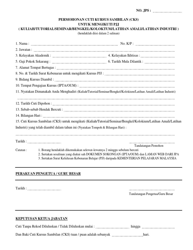 Permohonan guru ganti sekolah rendah & menengah 2020. Savesave borang cuti tanpa gaji for later. Permohonan cuti kuliah yang bertanda tangan di bawah ini adalah wali dari mahasiswa… I (jika ada perubahan, ketua jabatan pengetua /guru besar hendaklah tandatangan pemohon perhatian: 86%(7)86% found this document useful (7 votes).